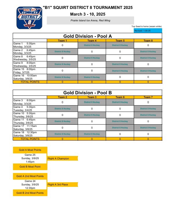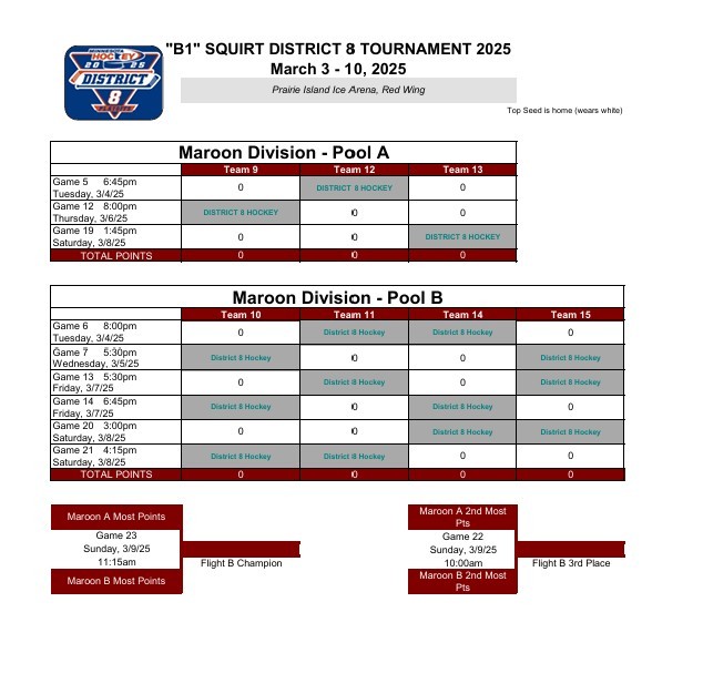 SQUIRT B1 DISTRICT 8 TOURNAMENT - MARCH 3rd - 10th 2025